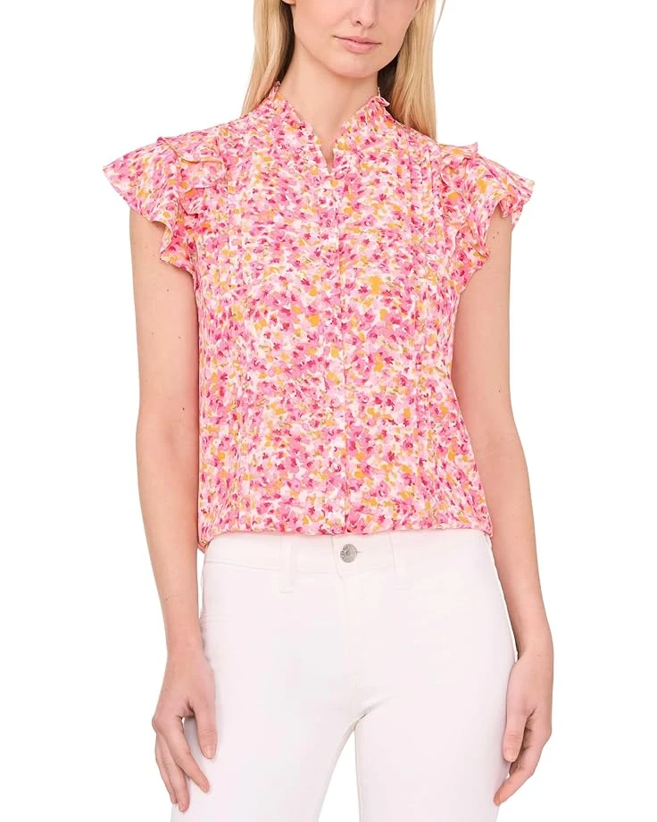 - Discover fashioned perfection with a fantastic blend of colors wearing the CeCeâ„¢ Button Up Pintuck Blouse. It features a ruffled collar, short flutter sleeves, button-down seamed front placket, and pintuck details on the front.