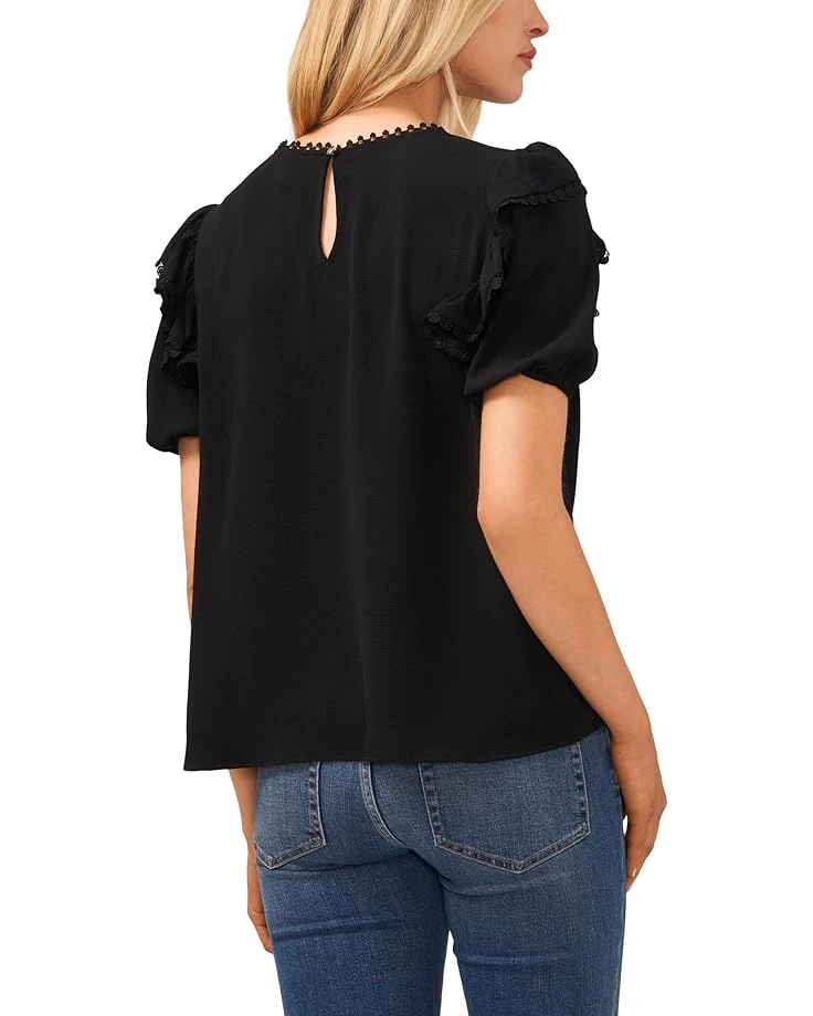 - Dress elegantly in this lace-adorned CeCe™ Crew Neck Pin Tuck Blouse with Ruffles.