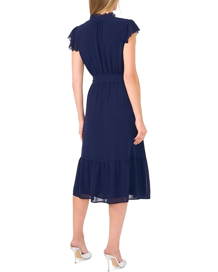 - Make a statement, wherever you go styling CeCeâ„¢ Double Ruffle Scalloped Sleeve Midi Dress! Feel the modern allure of textured georgette with a chic V-neck and A-line design. The double ruffle flutter sleeves add a whimsical flourish, while the detachable waist tie flatters your figure. Slip into sophistication with this pull-on, midi-length masterpiece.