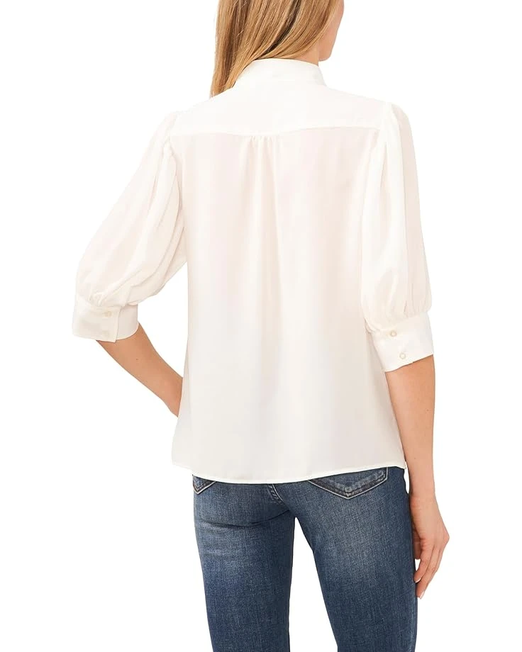 - Ease up in style from office to street frolics wearing the CeCeâ„¢ Elbow Sleeve Open Collar Blouse. It features a band collar, elbow-length puffy sleeves with buttoned cuffs, and concealed button-down front placket.