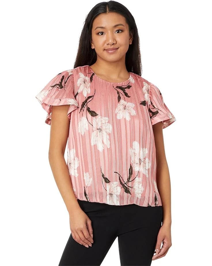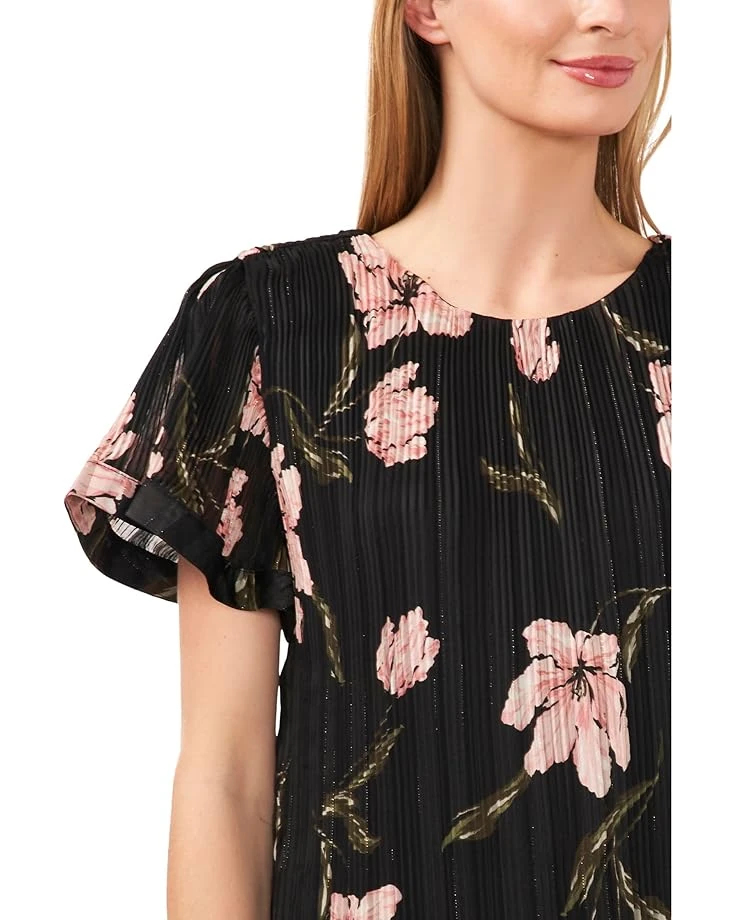 - Elevate your charm with this floral print CeCe™ Flowy Pleated Blouse, a darling addition to your wardrobe that exudes both elegance and cuteness. This pullover lurex stripe top fetures crew neckline and flowy short sleeves.