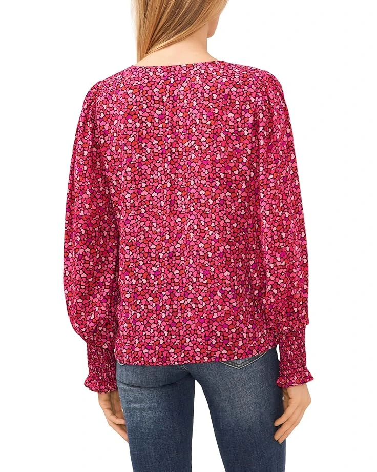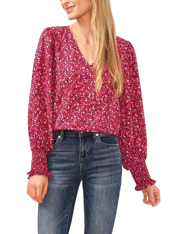 - Hearts in style: The CeCeâ„¢ Heart Blouse is your go-to statement piece! Fall in love with timeless elegance in this classic fit, heavy georgette blouse. Featuring a romantic V-neckline, long sleeves with smocked cuffs, and a pull-on design, it effortlessly blends comfort with sophistication.