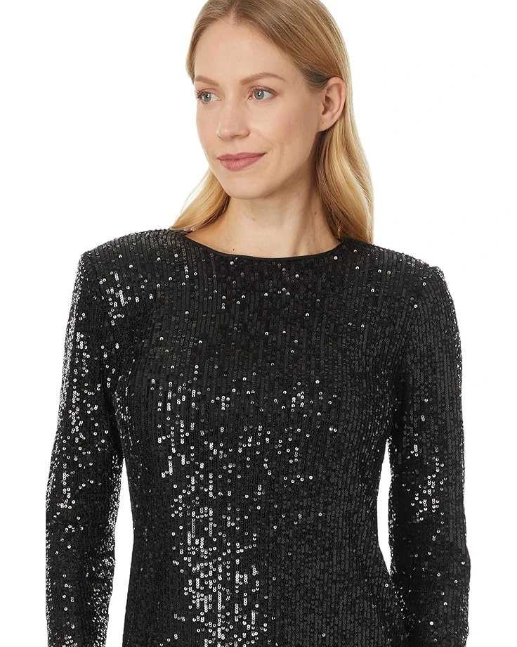 - Featuring long sleeves and a classic crew neckline, the CeCeâ„¢ L/S Fitted Crew Neck Boxy Shoulder Dress 060 sequin dress exudes timeless charm with a modern twist. The boxy shoulder detail adds an element of contemporary edge, ensuring you stand out from the crowd with effortless style. This fully lined bodycon dress comes with zippered back closure.