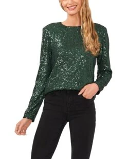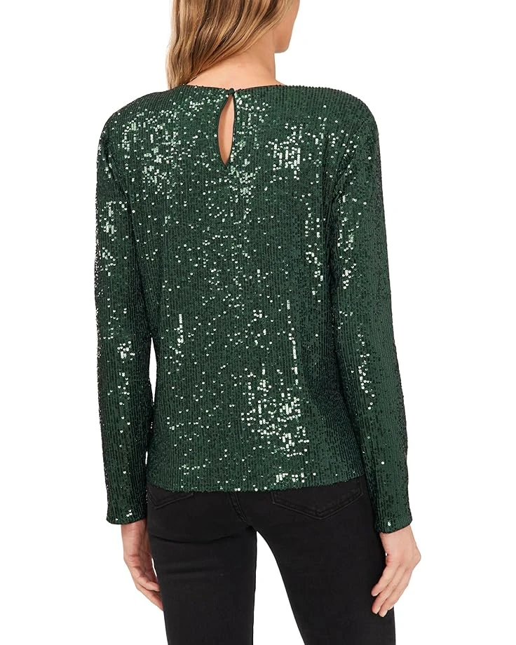 - Catch all the attention at the party shining in the brilliant CeCe™ Long Sleeve Crew Neck top with classy round neckline and long lseeves with a buttoned closure on the center back neckline.