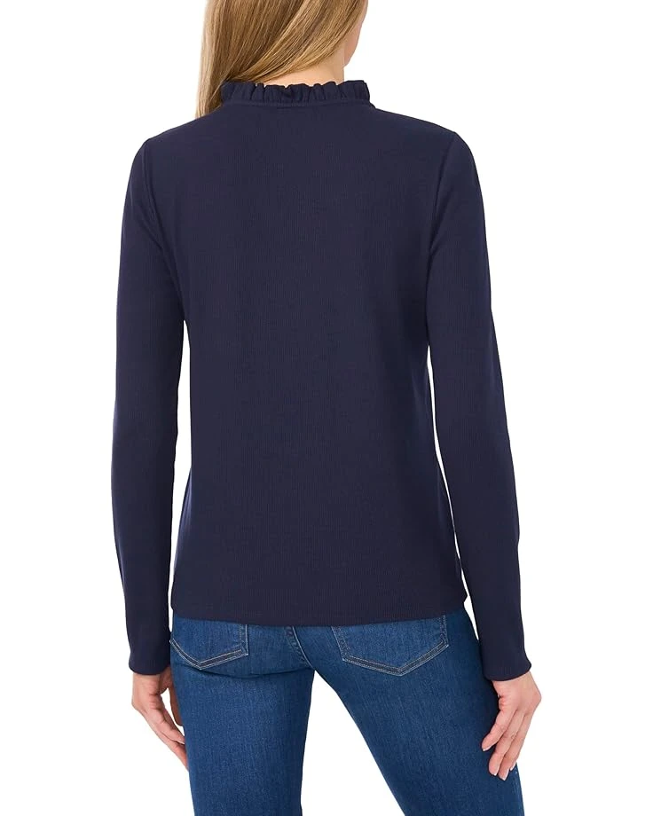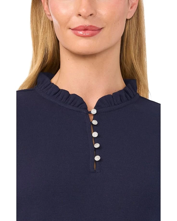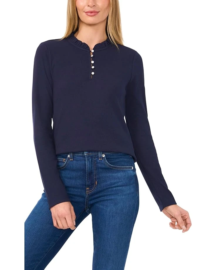 CeCe Long Sleeve Rib Knit Half Placket Top | Shirts & Tops
