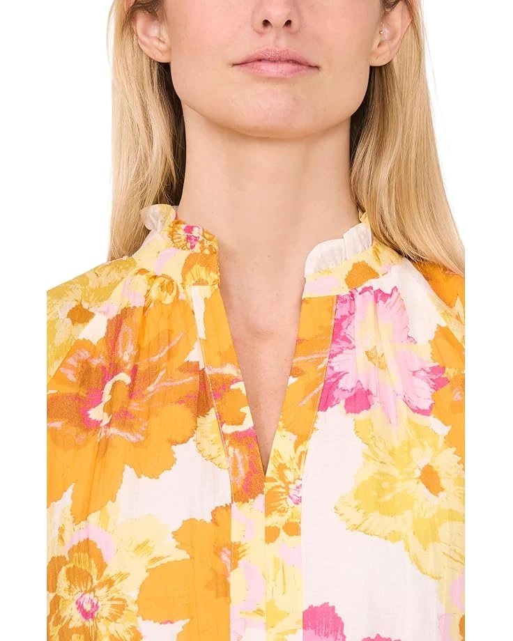 CeCe Printed Ruffle Neck Raglan Seam Split Neck Blouse | Shirts & Tops