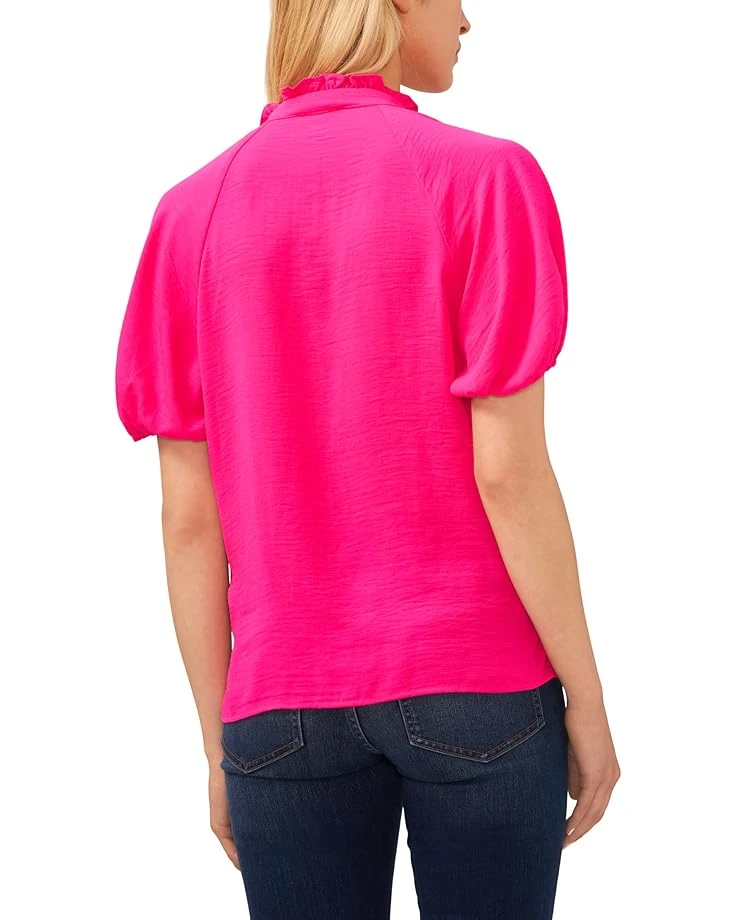 - Style your look in the vibrant and pretty design of the CeCeâ„¢ Ruffle Neck Raglan Seam Blouse featuring a unique texture.