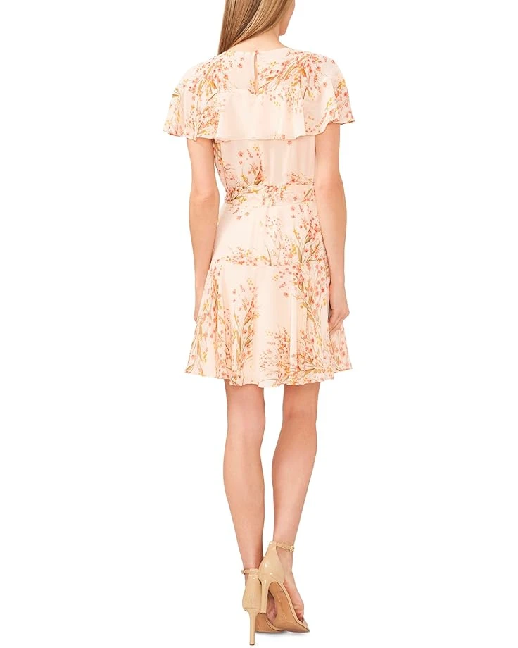 - Style your look in the effortlessly beautiful floral print of the CeCe™ Ruffle Yoke Waist Tie Dress with a yoke flounce high neckline and ruffled trim accenting the short sleeves. The mini-length dress in A-line silhouette highlights a tiered skirt with a self-tie belt finish.