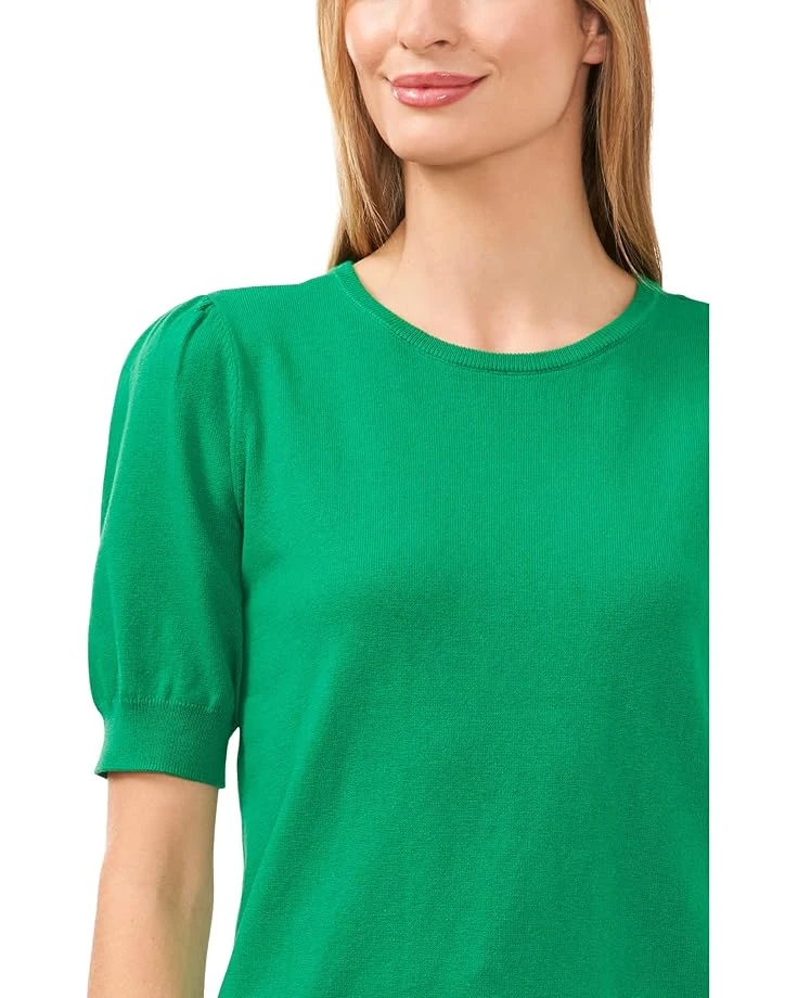 - Brighten up your outfits and looks by wearing the CeCeâ„¢ Short Sleeve Pearl Back Sweater. The short sleeves and a crew neckline add to its comfort and style. This crew-neck sweater is designed with a buttoned back closure with a pearl button for easy wear. Perfect to pair with trendy jeans and stylish skirts, this cotton sweater makes a great addition to your wardrobe.