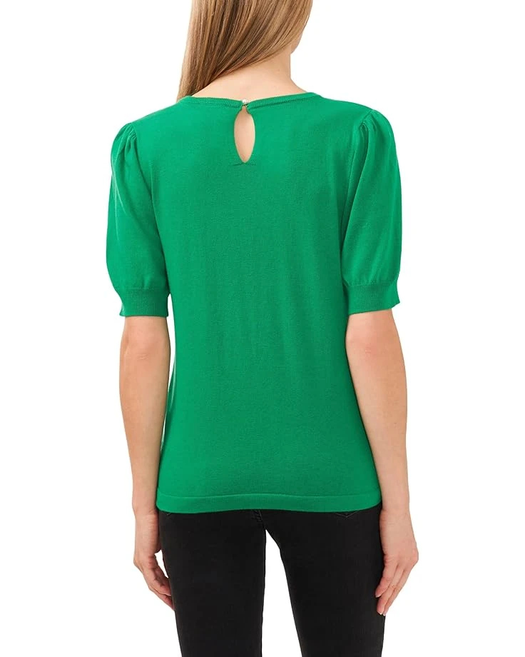 CeCe Short Sleeve Pearl Back Sweater | Sweaters