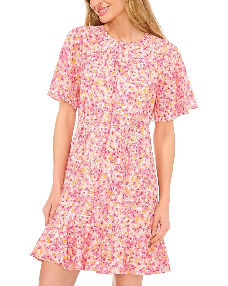 - Own every look in the CeCe™ Raglan Fluted Hem Skater Dress! Featuring a stunning floral print on heavy georgette, this partially lined dress boasts a detachable spaghetti tie at the waist for versatile styling. With a fluted raglan design, zippered closure at the center back, and charming ruffles at the hem, it’s the perfect blend of elegance and comfort. Elevate your wardrobe with this above-the-knee stunner!