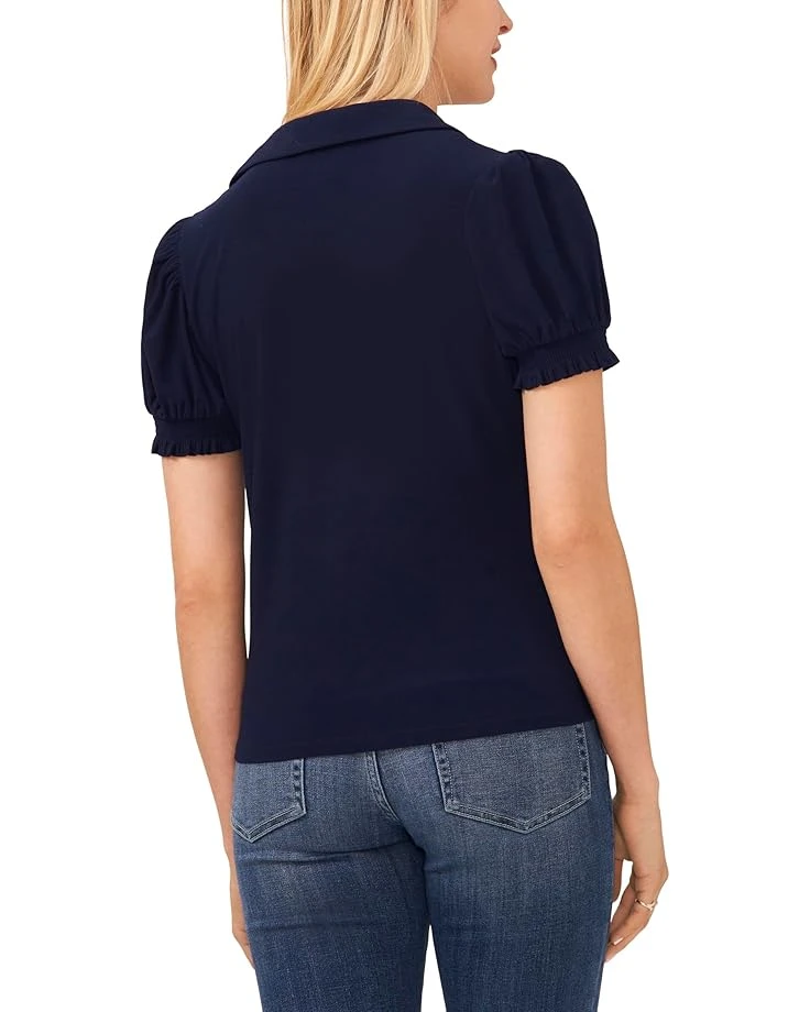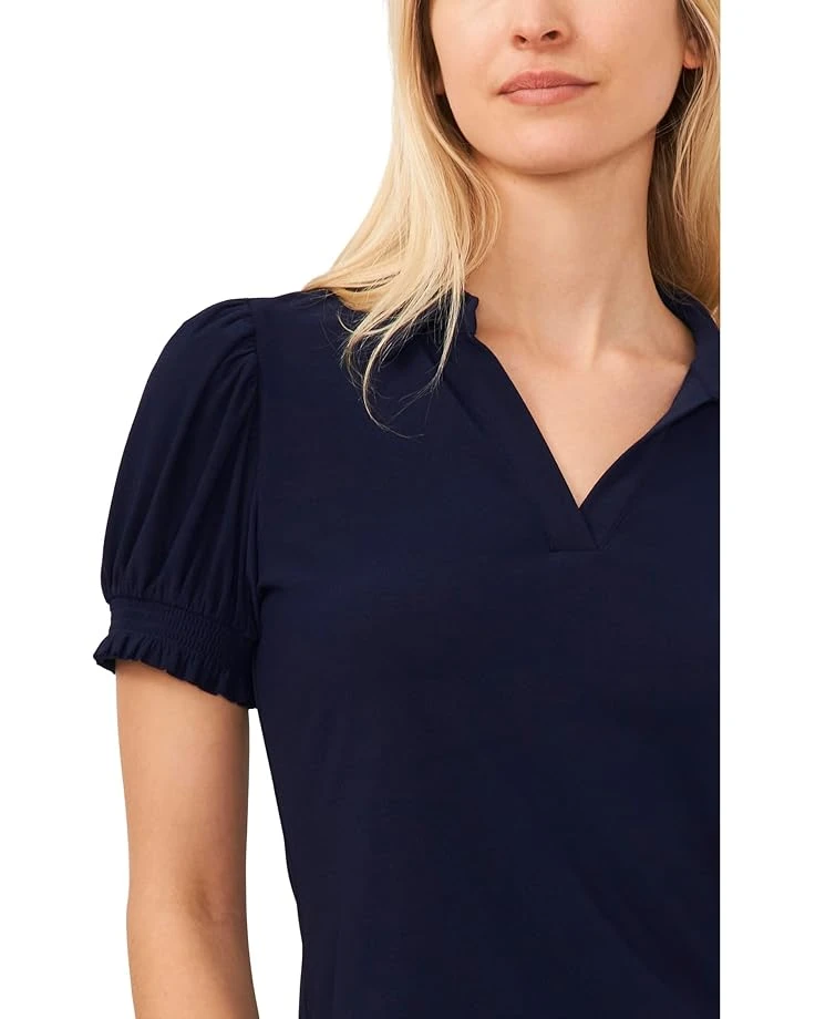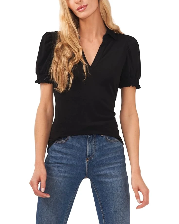 CeCe Short Sleeve Split-Neck Collared Top | Shirts & Tops