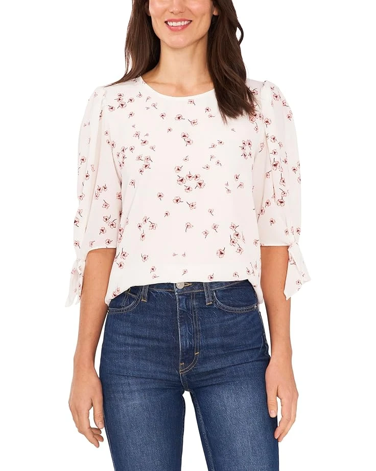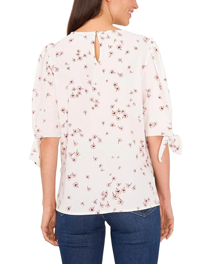 - The soft texture of the fabric and allover printed design makes CeCe™ Tie Sleeve Blouse an ideal choice for the sunny day.