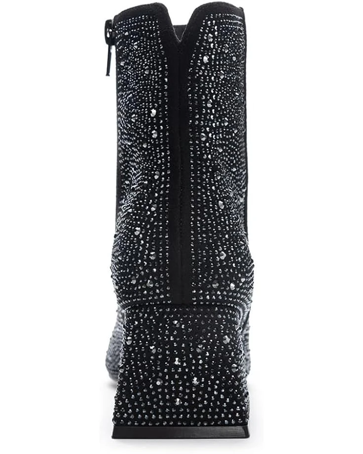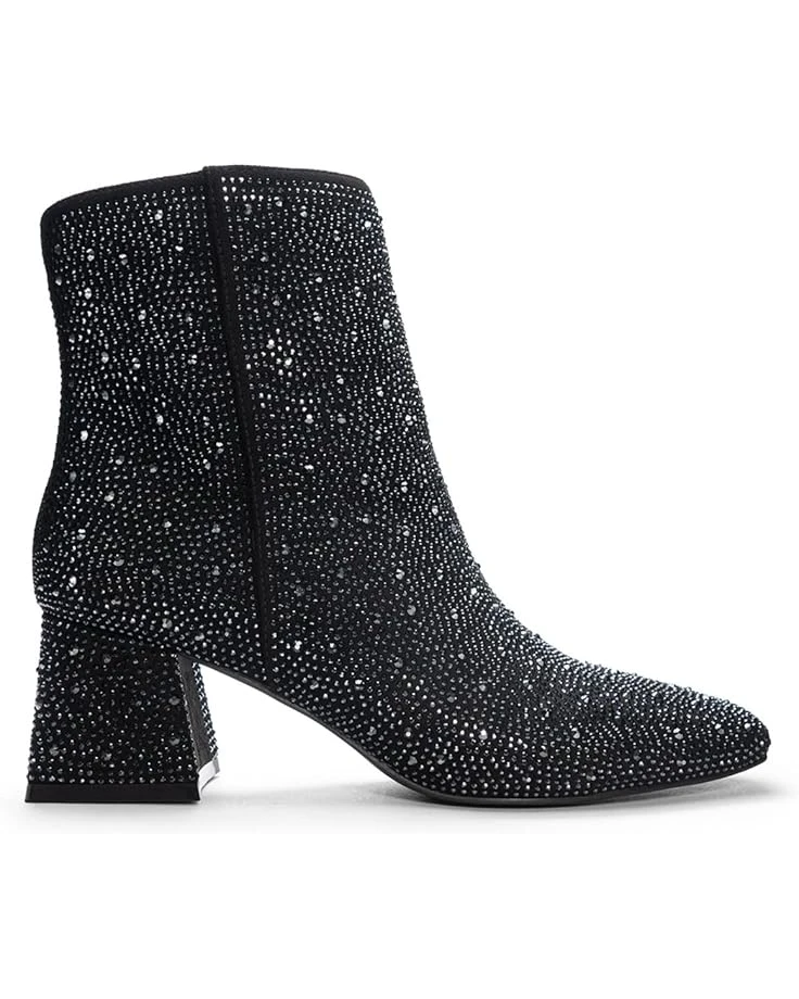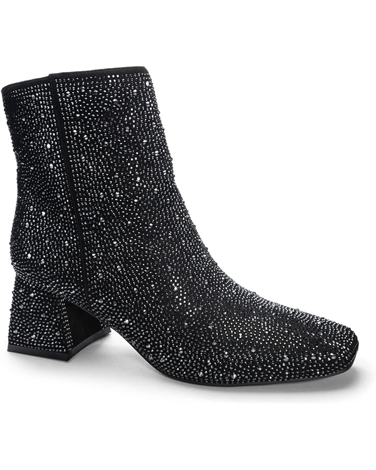 - Radiate a sparkling charm as you dance the night away wearing the Chinese Laundry® Diya Boots. Decorated with shimmery rhinestones throughout the exterior for a striking appeal, the shoes display a squared toe silhouette with a mid-ankle shaft and a flared block heel. Durable and comfortable, these boots are made of synthetic upper and lining.