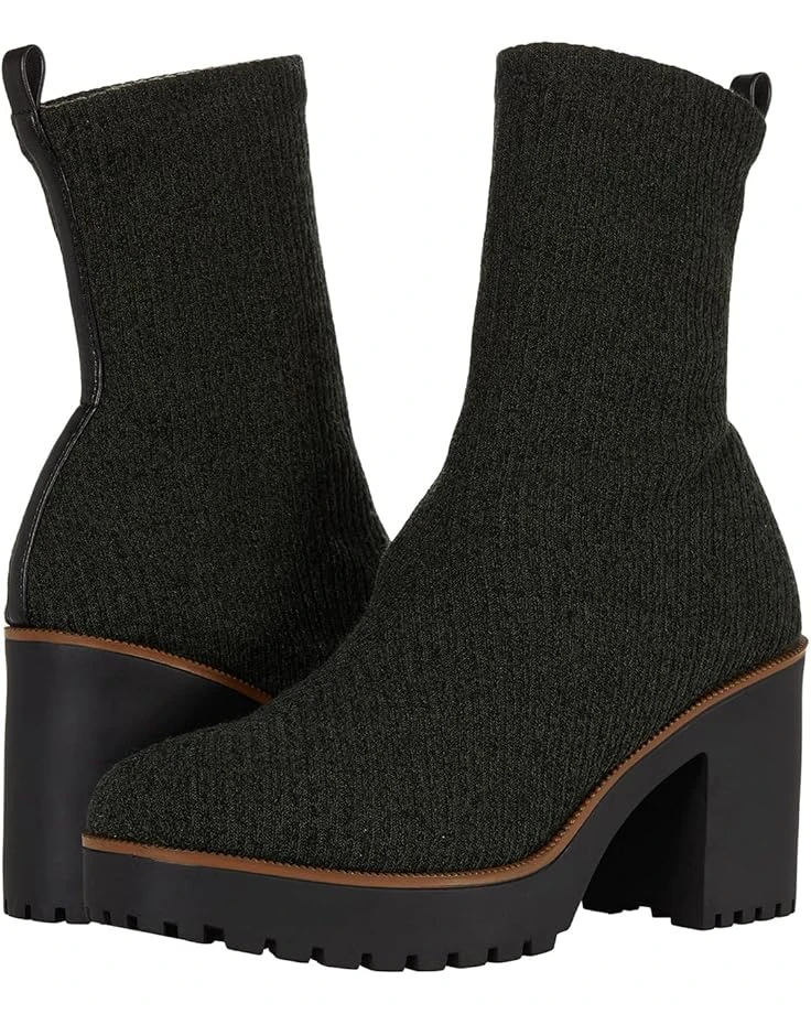 - Elevate your style in comfort with the Chinese Laundry® Garvey heeled boots, featuring a soft knit upper and tall block heel.