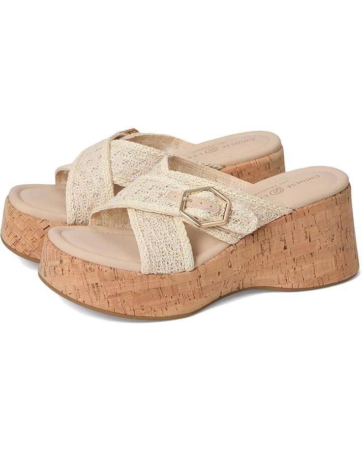 - The Chinese Laundry® Loulou comfort wedge is a savvy choice for the chic aficionado aiming to blend functionality with substantial all-day comfort. Featuring an intricate woven cross band, open round toe, slip-on style, and a statement buckle, padded sock and cork wedge, the loulous will keep your stride grounded and gorgeous. Pair with bermuda shorts and a linen corset to heighten your warm-weather wardrobe.
